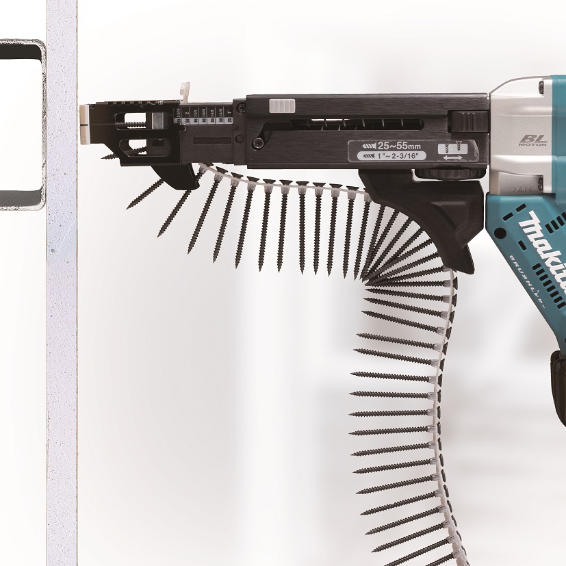 - Aku šroubovák se zásobníkem pro standardně dodávané pásky se šrouby do sádrokartonů o délce 25-55 mm