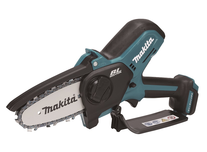 - Lehká a kompaktní prořezávací pila s lištou 100mm fungující na akumulátory Li-ion 12V