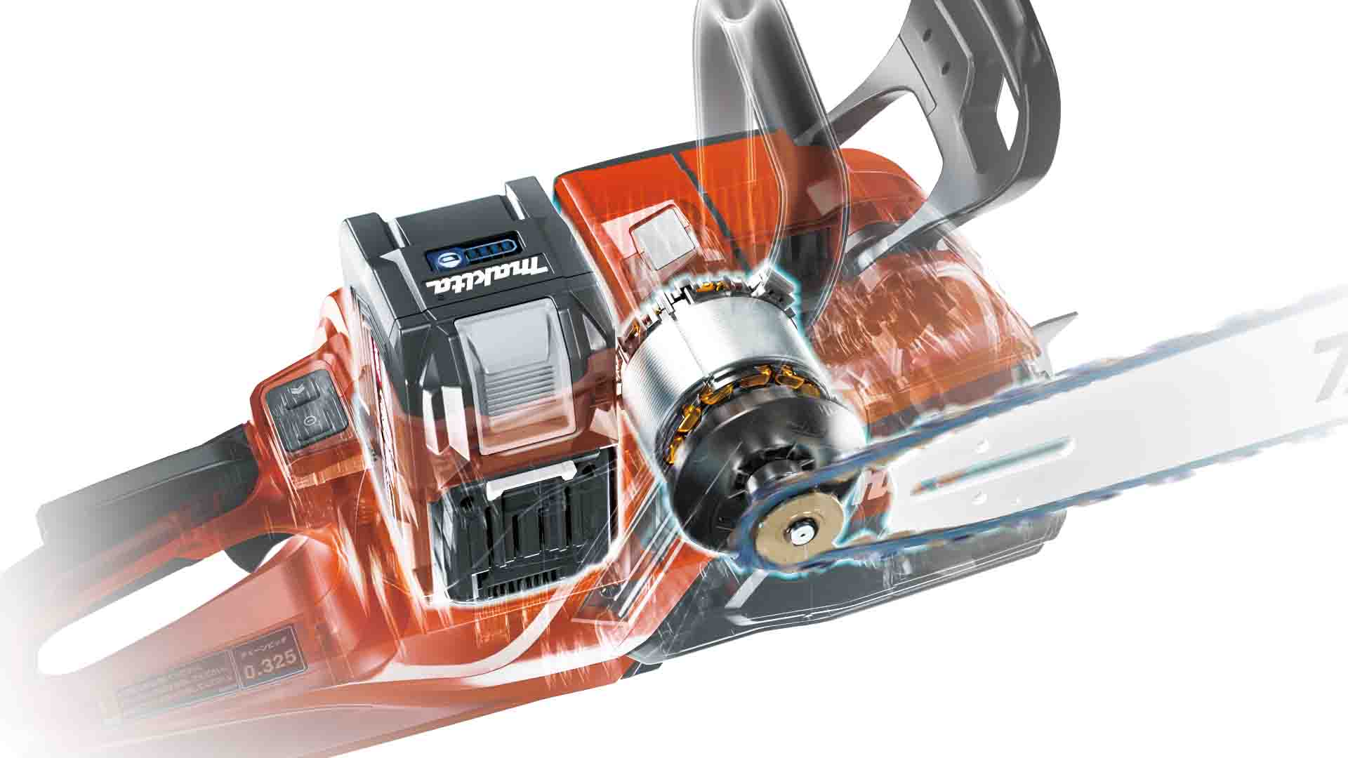 - Velmi silný bezuhlíkový motor 2,8 kW (výkon s BL4080H) je napojený přímo na řetězku
