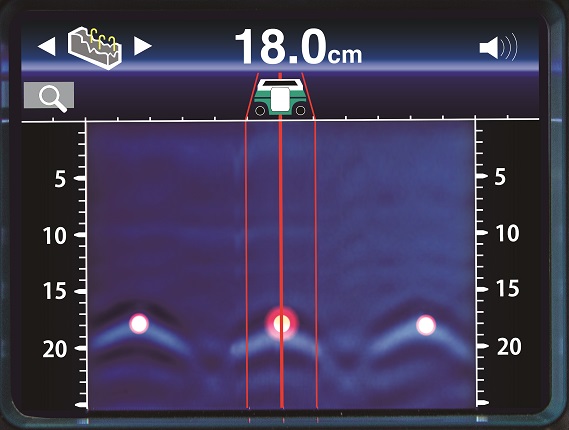 - Umožňuje detekci kovu až do hloubky 180 mm, trubek a elektrických drátů do hloubky 120 mm, dřeva do hloubky 25 mm