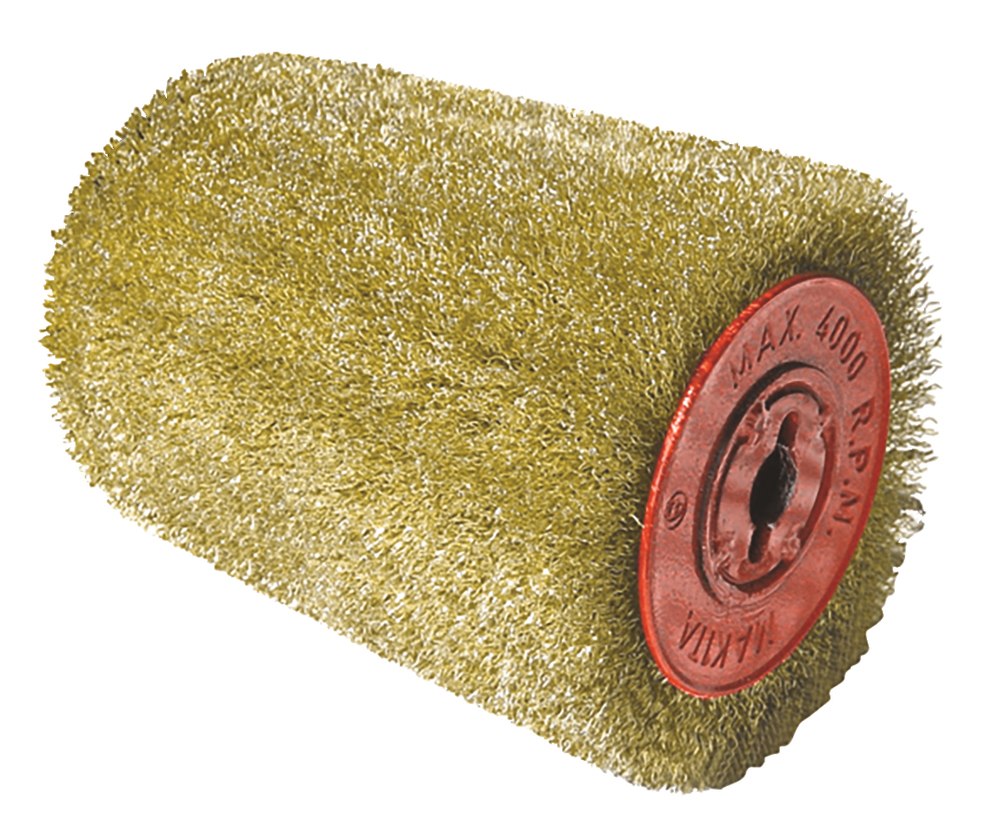 Ocelový pomosazený kartáč o síle drátu 0,3 mm. Pro strukturování dřeva, velmi vhodný pro vysoký otěr měkkého a tvrdého dřeva, odstranění rzi a čištění.