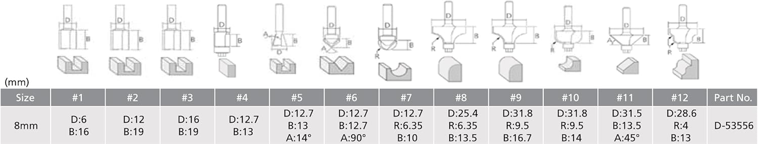 Sada fréz 12 ks obsahuje: