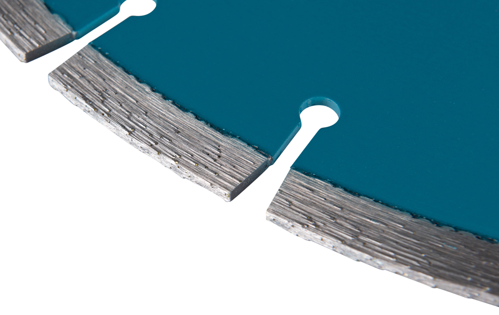 Segmentový diamantový kotouč vhodný pro mokré i suché řezání betonu. Určeno především pro použití v akumulátorových strojích. Výška segmentu 8mm.