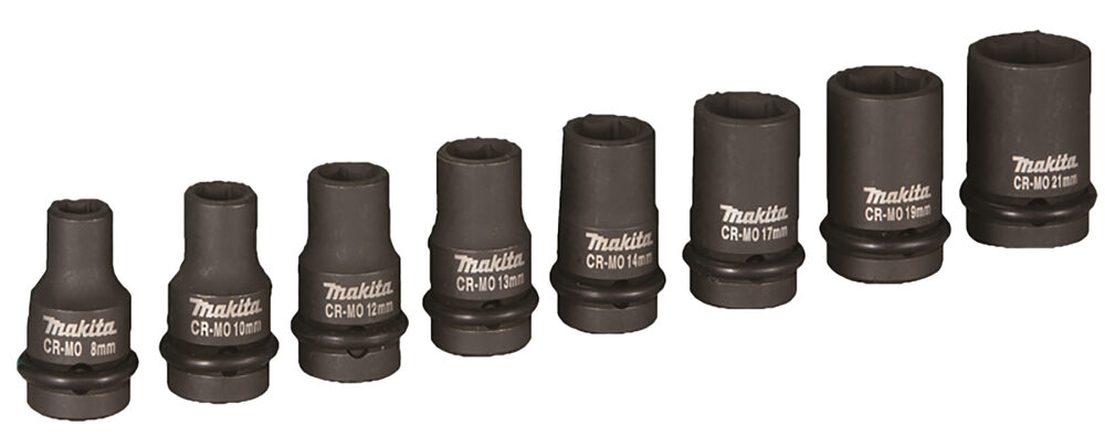 Sada průmyslových hlavic vhodných pro použití s rázovými utahováky, délka hlavic: 38 mm, velikost hlavic: 8, 10, 12, 13, 14, 16, 17, 19, 21 mm