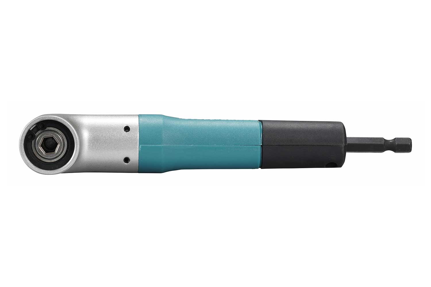 Úhlový nástavec 90° s uchycením 1/4“ lze použít s rázovými šroubováky a vrtačkami.