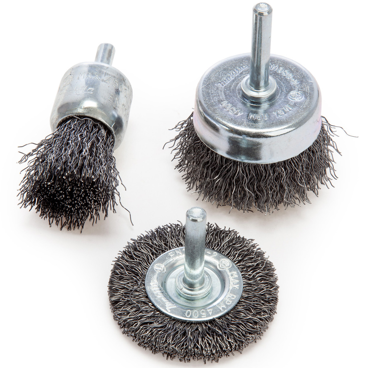 Sada ocelových kartáčů do vrtačky. 3ks - různé typy - 6 x 25 mm, 6 x 50 mm a 6 x 50 mm