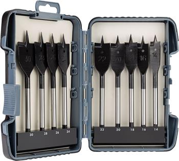 Sada obsahuje vrtáky o průměru 14, 16, 18, 20, 22, 24, 26, 28, 30 mm. Dodáváno v plastové krabičce.