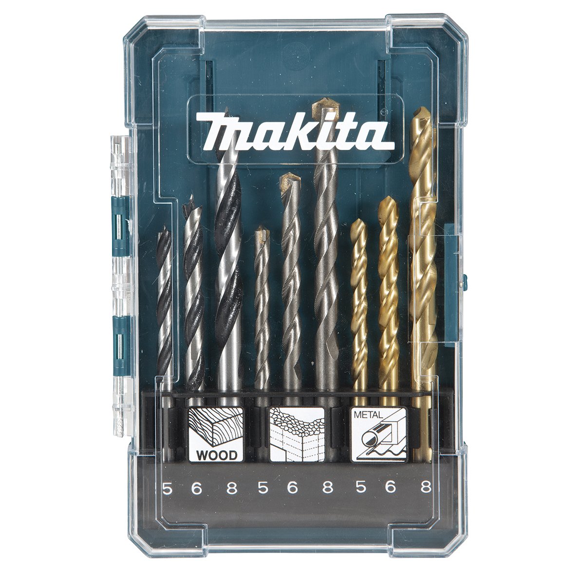 Sada obsahuje vrtáky s válcovou stopkou do zdiva 5, 6 a 8 mm, do dřeva 5, 6 a 8 mm a do kovu HSS-TiN 5, 6 a 8 mm. Sada je dodávaná v plastové krabičce.