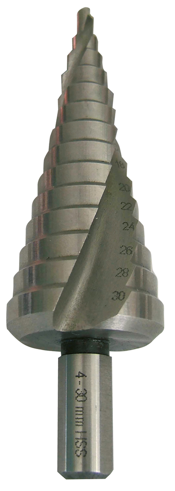 Stupňovitý vrták HSS-G spirálová drážka. Ocel a ocelolitina, legovaná a nelegovaná