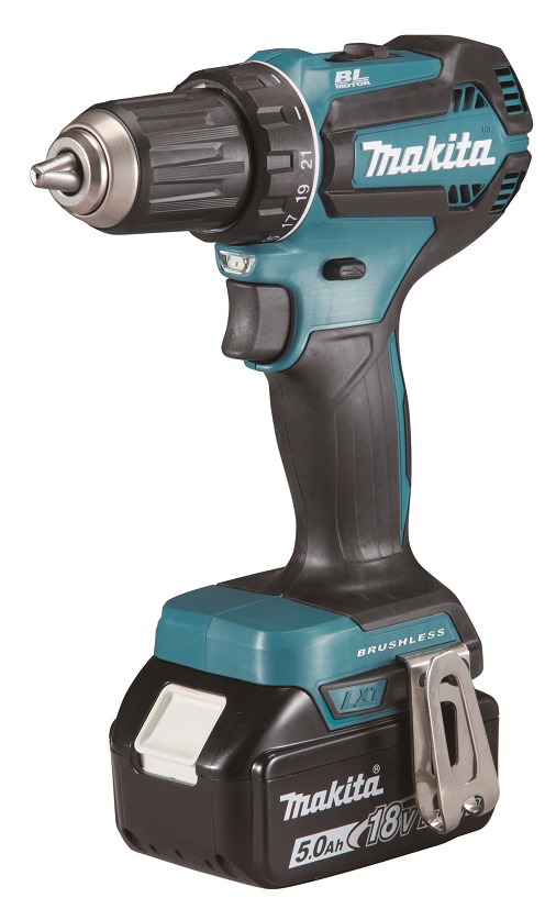 - Vrtací šroubovák s bezuhlíkovým motorem umožňujícím delší práci na jedno nabití akumulátoru