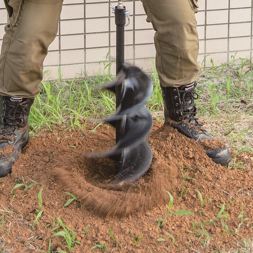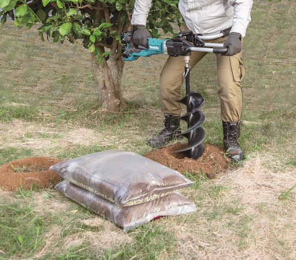 - Spolehlivý aku půdní vrták fungující na 2 akumulátory Li-ion 18V