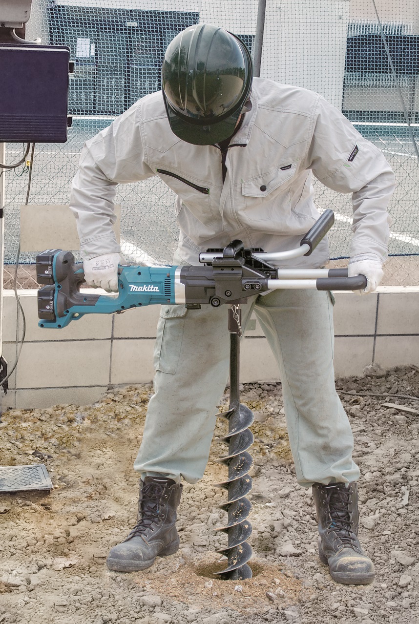 - Spolehlivý aku půdní vrták fungující na 2 akumulátory Li-ion 18V LXT