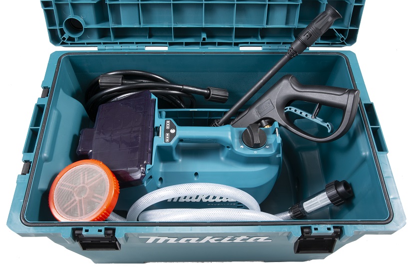 - Lehká a tichá tlaková myčka fungující na dva akumulátory Li-ion 18V LXT